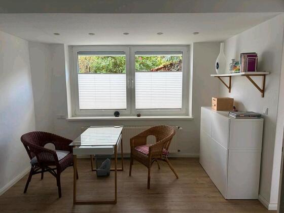 Charmantes Büro-Appartment im Souterrain, ca 25qm, mit eigenem Eingang und Gartennutzung -Nähe Nordfriedhof- von privat zu vermieten. Der Hauptraum ist mit einem hellen, pflegeleichten Vinylboden ausgestattet. Ein praktischer Spiegeleinbauschrank ist... mehr erfahren